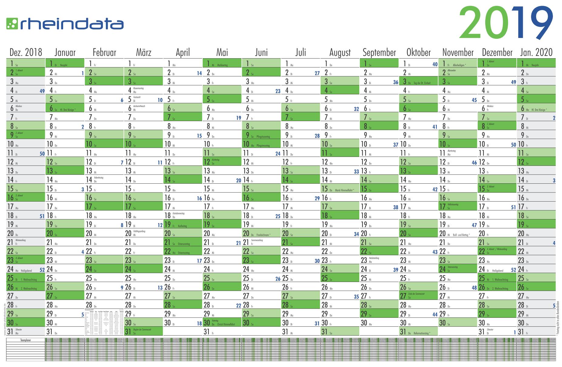 Jahresplaner mit Urlaubsplaner